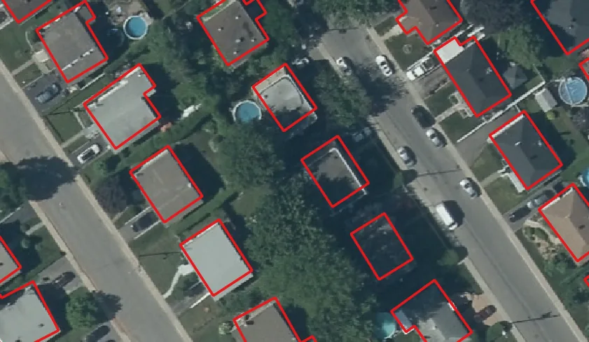 Building footprints, vegetation intelligence, property features, land-cover layers, and temporal change products can be delivered as GIS-ready outputs.